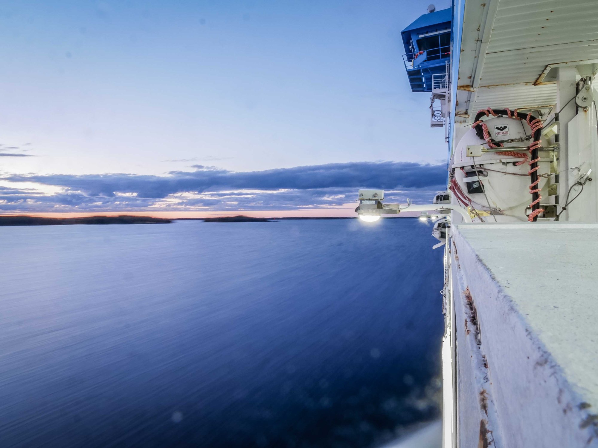 Après quelques jours à Stockholm, il est à nouveau temps de partir. Au lieu de contourner la Baltique à vélo, je m’offre une traversée de nuit entre Stockholm et Turku en Finlande. Le bateau part en fin de soirée pour arriver en Finlande le lendemain matin. Pendant les premières heures de la traversée, le « Galaxy » se fraie un chemin entre la centaine d’îles à l’est de Stockholm. Et comme toujours à cette période de l’année, le soleil se couche à peine. La lumière est fade et la vitesse est lente. Malgré le bruit des vagues et des turbines, on caresse les îlots qui mènent leur propre vie. Plus rien ne les dérange. Et la Finlande semble si proche…
